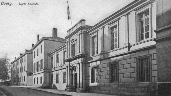 Sous la Troisième République4, le lycée Jérôme Lalande (nom porté depuis le 28 janvier 1891) est restructuré, agrandi et équipé. L’instruction religieuse devient facultative avec la loi de séparation des Églises et de l’État de 1905, mais l’influence et l’autorité de l’aumônier du lycée reste importante. C’est également à la fin du XIXème siècle que d’autres établissements font leur apparition dans la ville de Bourg-en-Bresse, notamment l’école Joseph-Marie Carriat en 1882 et le lycée Edgar Quinet, destinées aux jeunes filles, en 1888.
